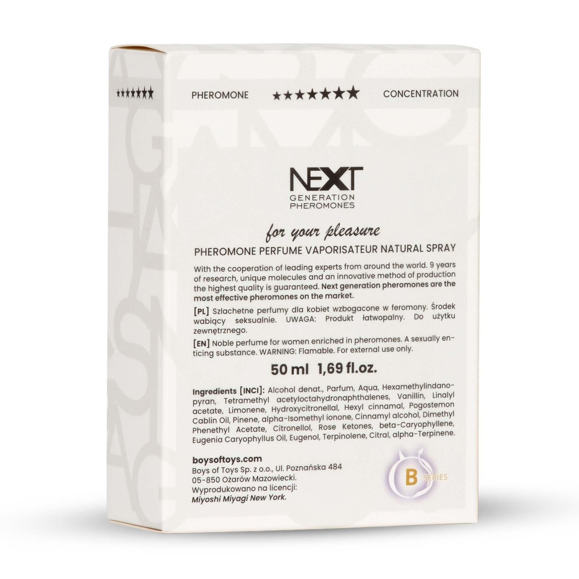 Z myślą o tych wyjątkowych kobietach powstały perfumy Miyoshi Myiagi NEXT z aktywnym kompleksem feromonów nowej generacji. Unikalny zapach zaprojektowano jako symbol następnego kroku ku pełni kobiecości.